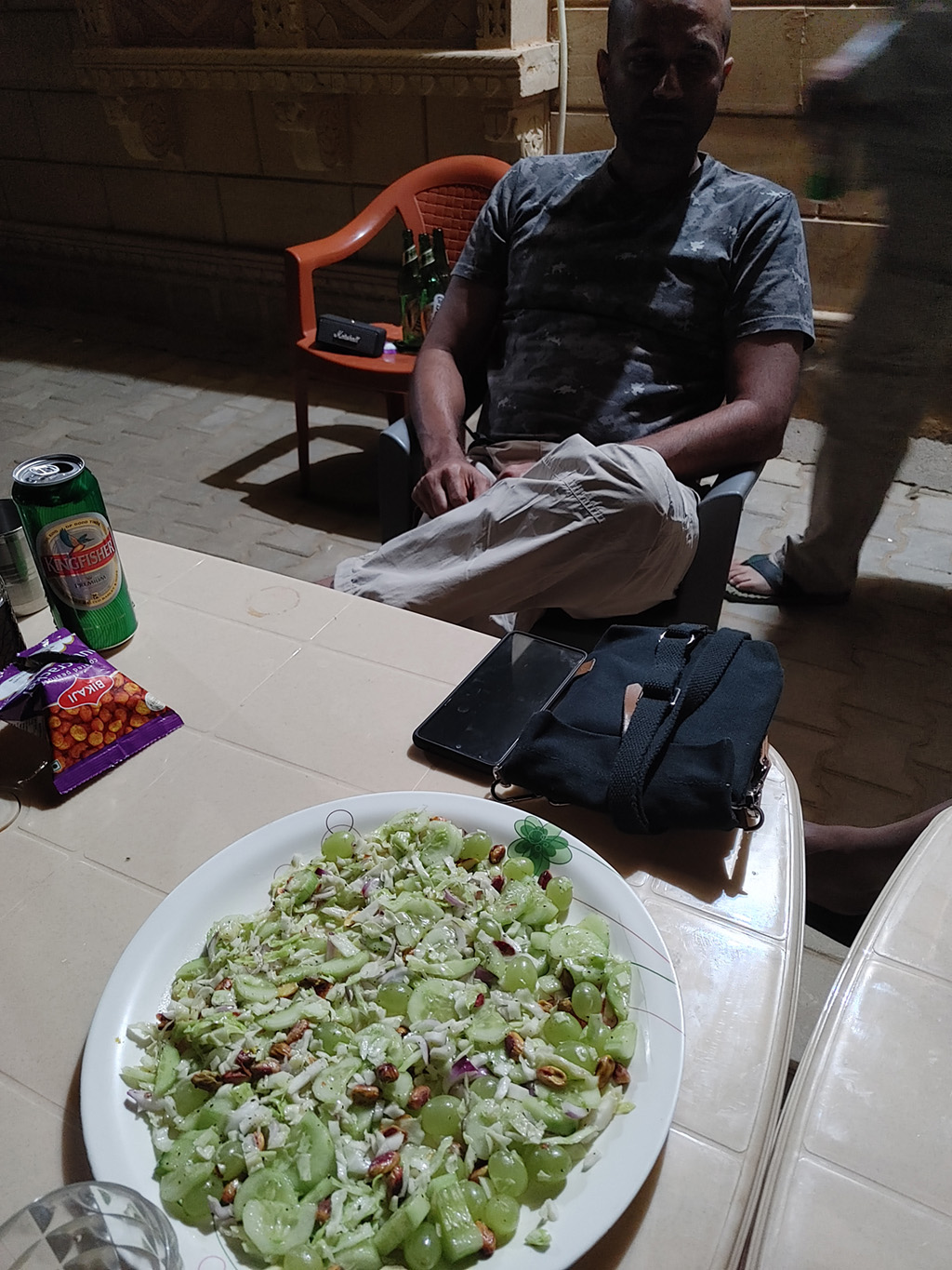 That evening Arun rustled up a superb salad which we all devoured ravenously ! With all the action, and pussy waiting, Arun & Rahul went down with a heat stroke.